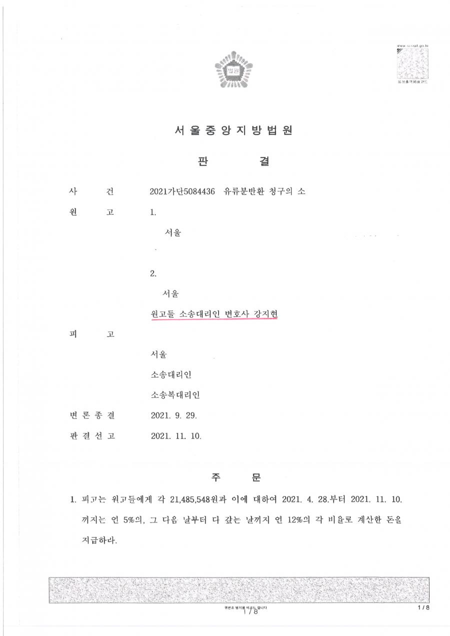 - 사건 : 2021가단5084436 유류분반환 청구의 소