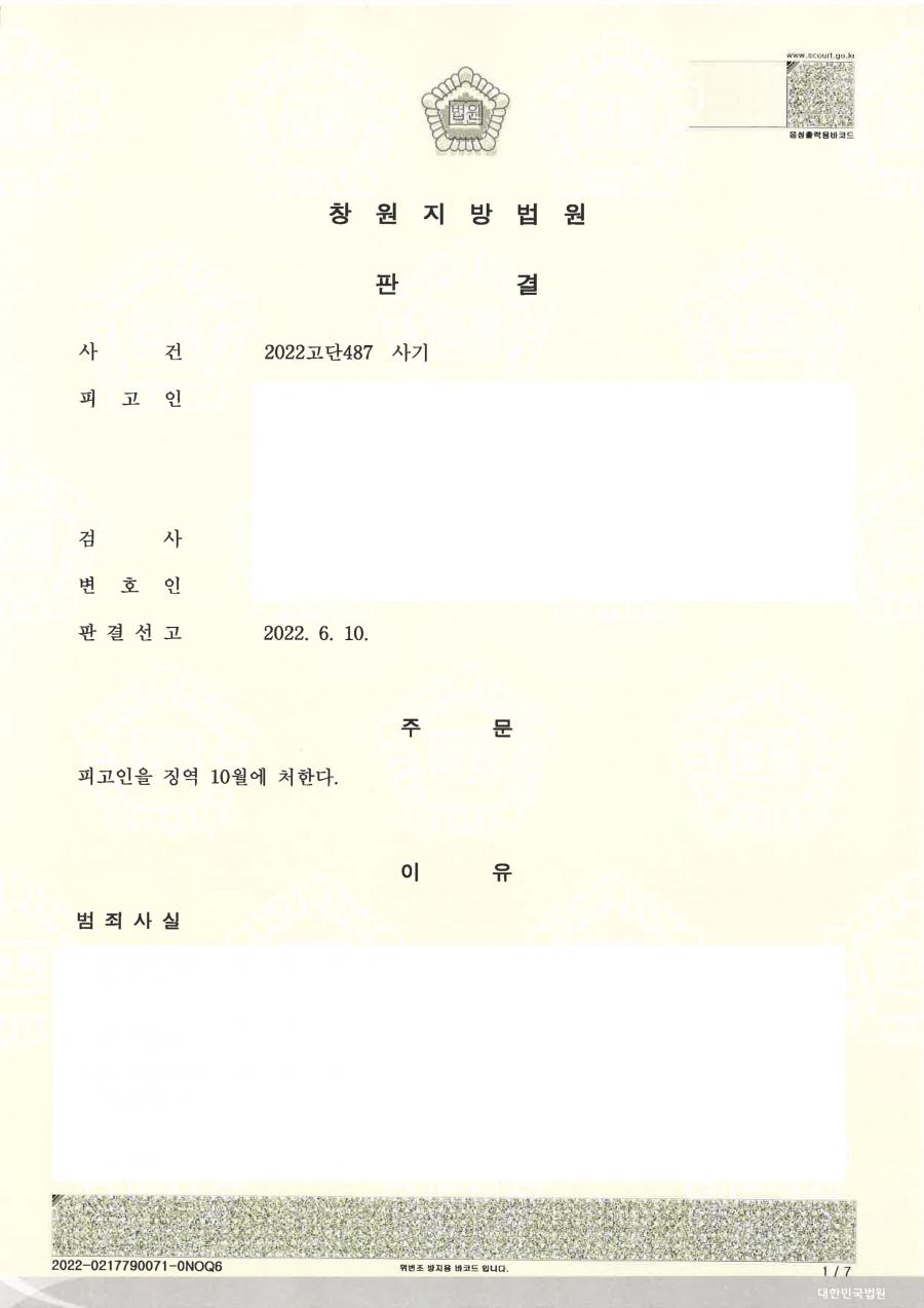 - 판결요지 : 모바일 게임을 통해 알게된 피해자를 상대로 친분을 쌓으면서 이성으로서 호감을 느끼게 한 후 금원을 편취한 사건으로, 피해자의 고소대리인으로 고소장을 접수하여 피고인이 징역 10월 판결을 받은 사례.