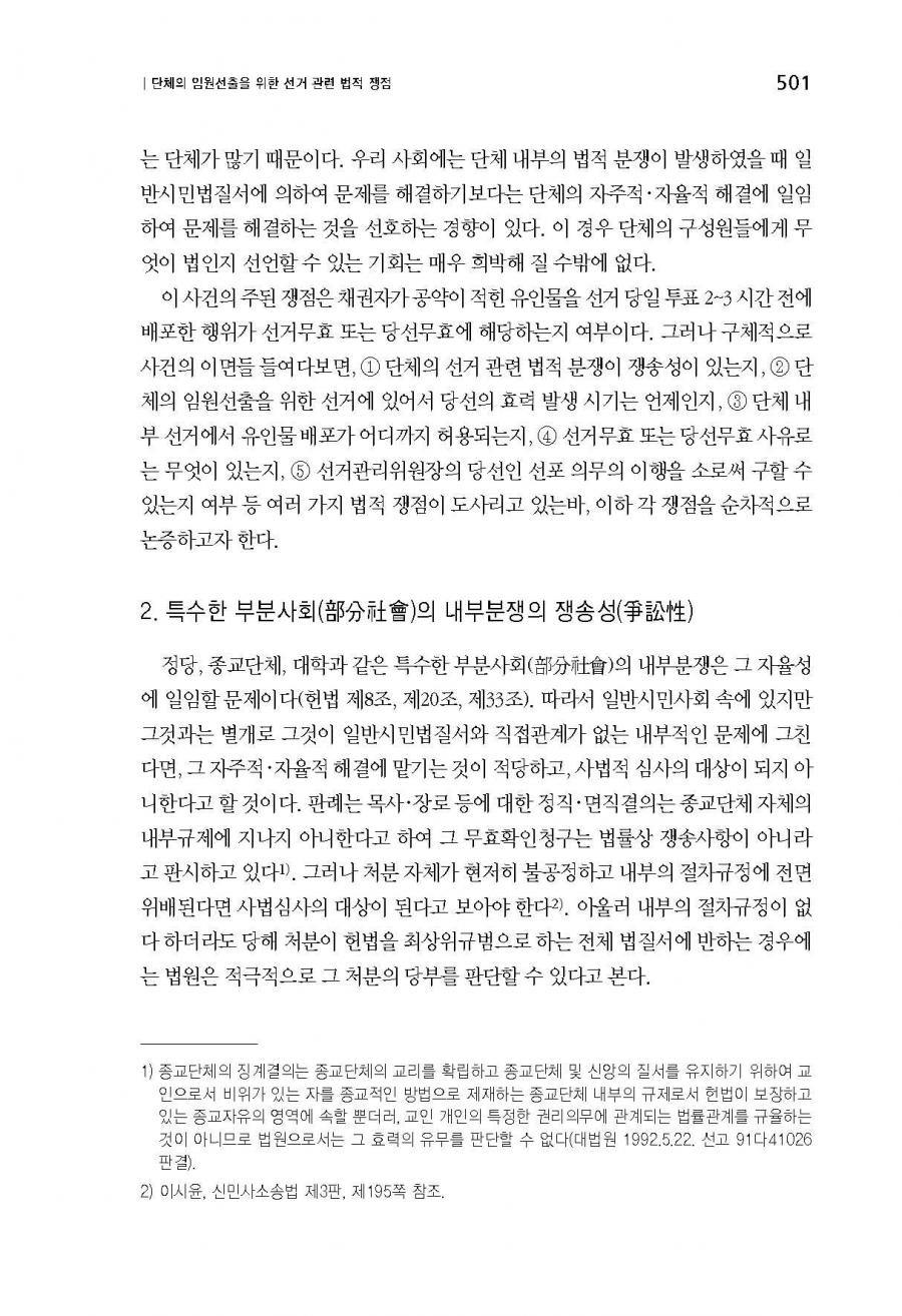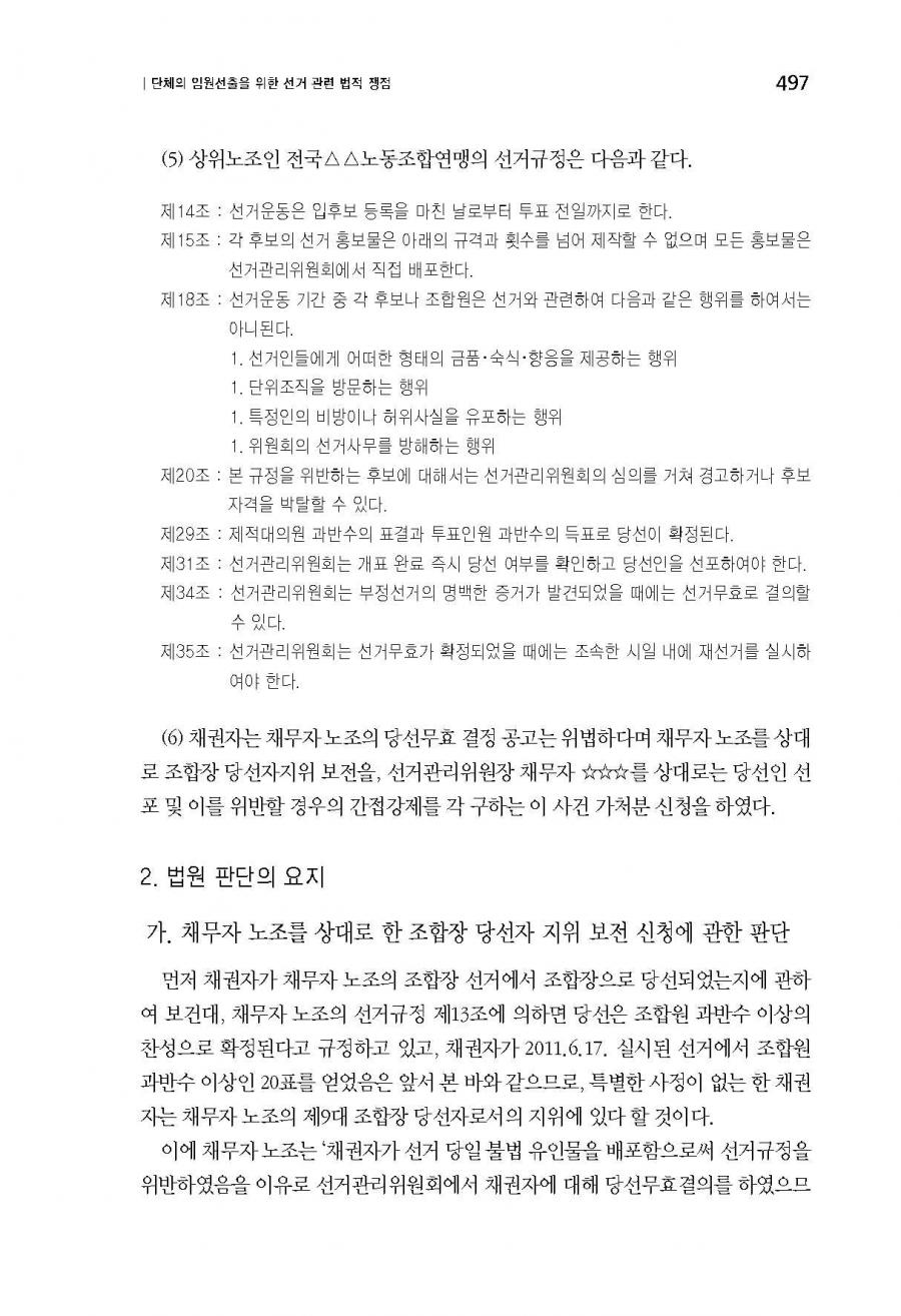 단체의 임원선출을 위한 선거관련 법적 쟁점